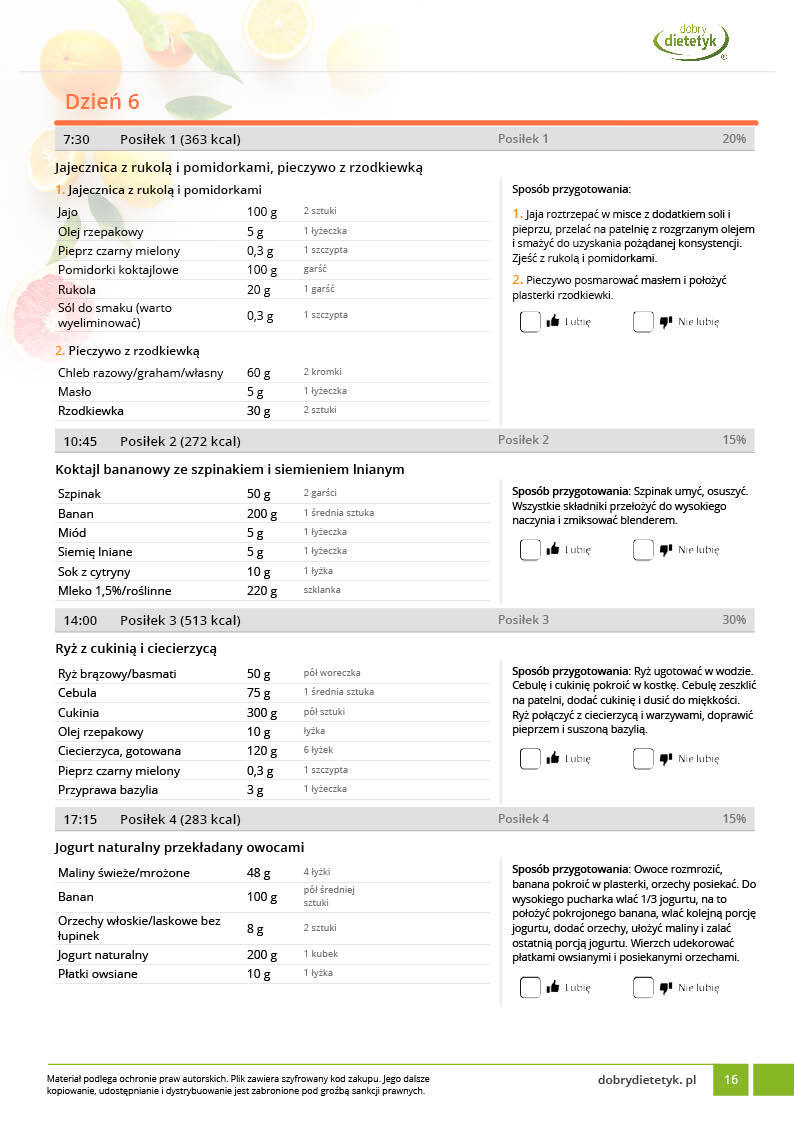 • w formie precyzyjnych jadłospisów wielodniowych (na każdy dzień miesiąca jest opracowany osobny jadłospis). Tutaj nie musisz zastanawiać się co zjeść każdego dnia, gdyż będziesz mieć dokładnie wszystko rozplanowane.
