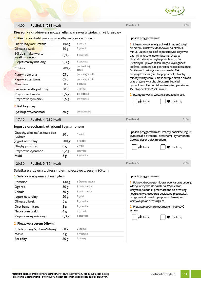 • Liczba posiłków w ciągu dnia: 5