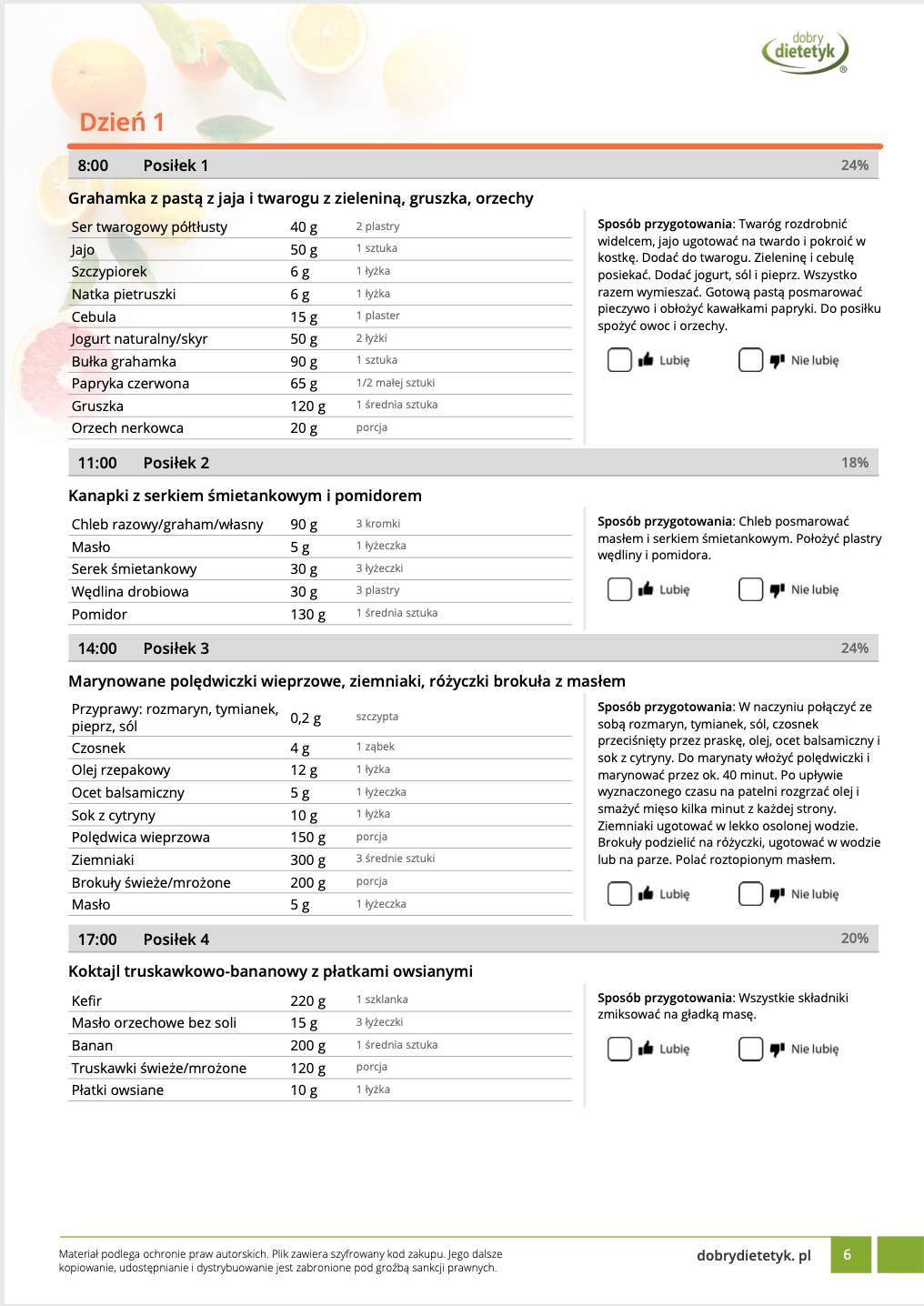 • Liczba posiłków w ciągu dnia: 5