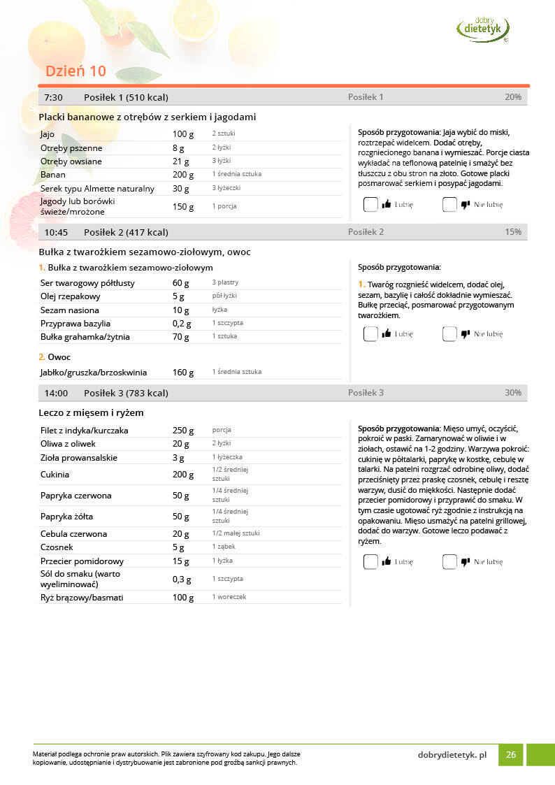 • w formie precyzyjnych jadłospisów wielodniowych (na każdy dzień miesiąca jest opracowany osobny jadłospis). Tutaj nie musisz zastanawiać się co zjeść każdego dnia, gdyż będziesz mieć dokładnie wszystko rozplanowane.