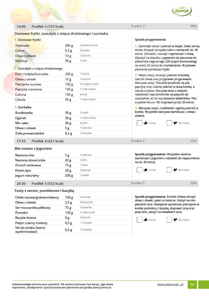 • Liczba posiłków w ciągu dnia: 5